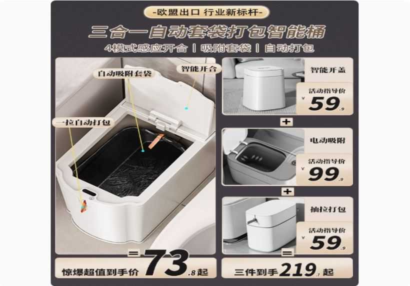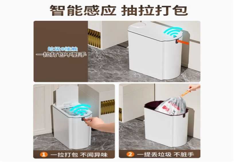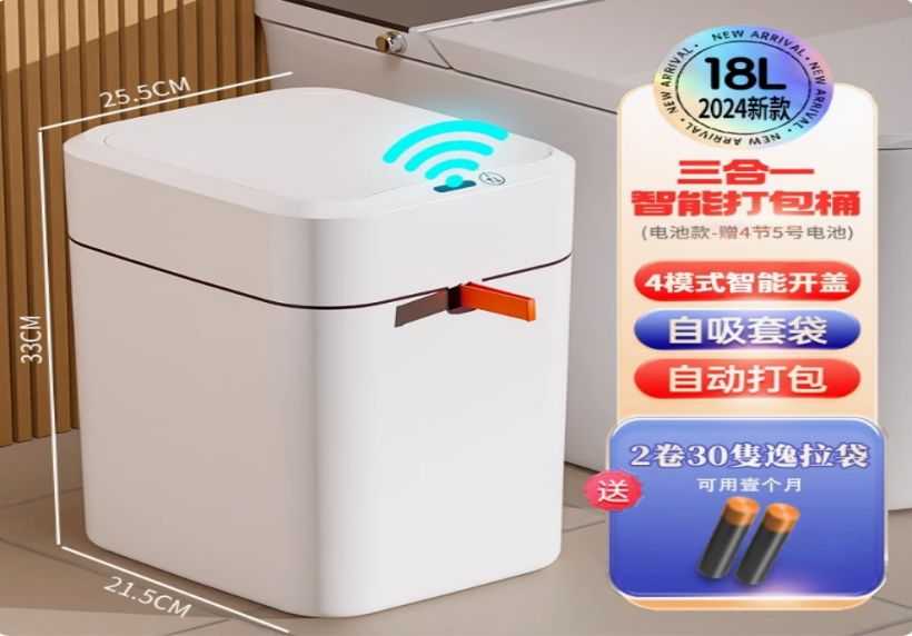 18L Smart Waterproof Trash Can [Blue Light + 4-Mode Sensing + Automatic Bag Suction & Fitting + Lifting & Sealing] - Comes with 30 Easy-Pull Bags