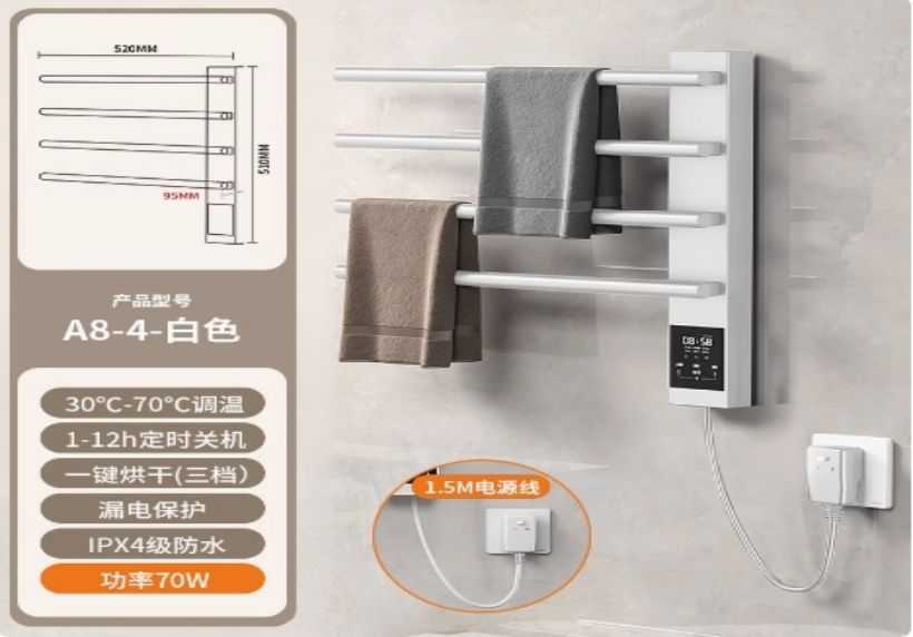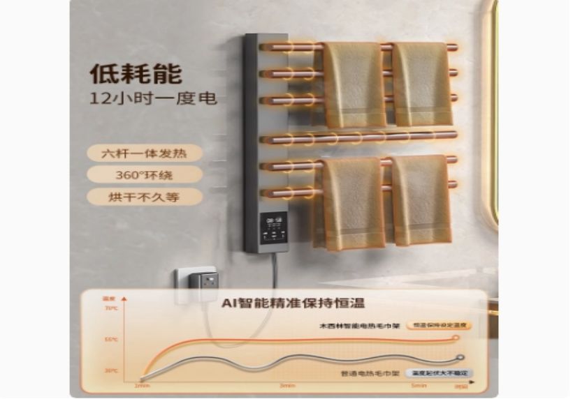 Smart Electric Towel Rack for Bathroom - Small-Size Carbon Fiber Drying Accessory (Surface or Recessed Mounting, Drill-Required)