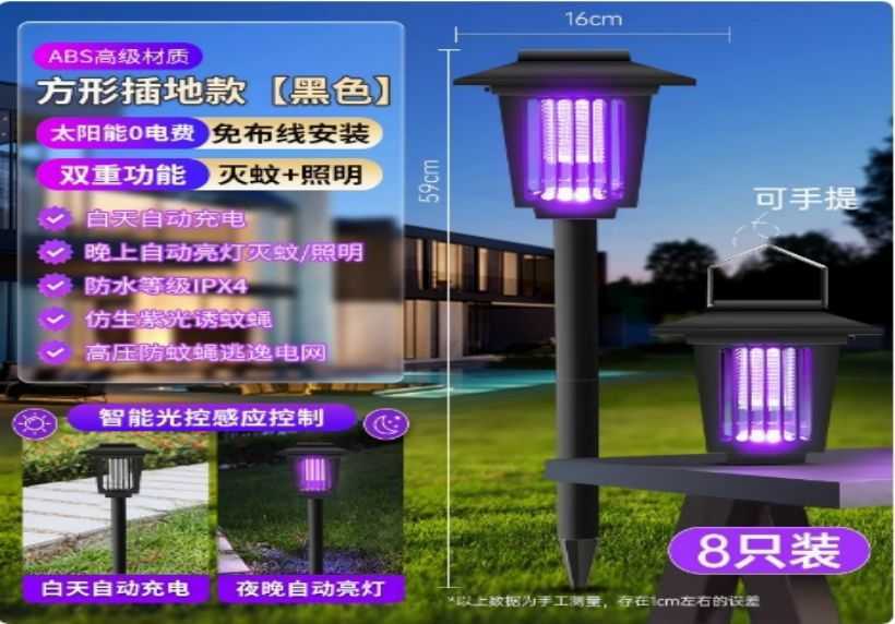 升级大号方形智能灭蚊灯【强力电击 360°全面灭蚊】+白光照明