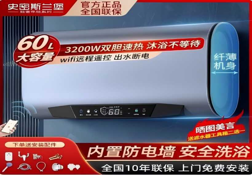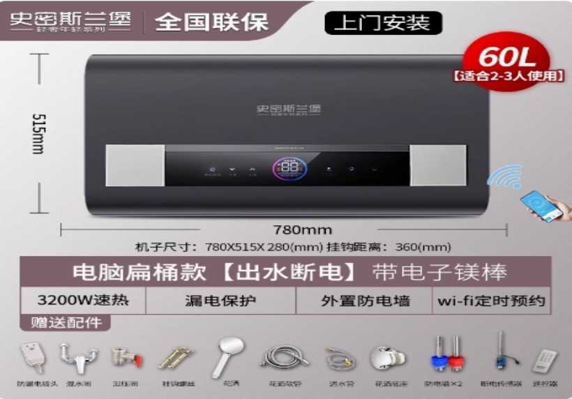 电热水器家用一级节能变频 WIFI智控60升触屏遥控黑白调