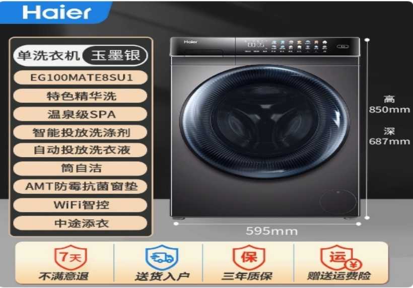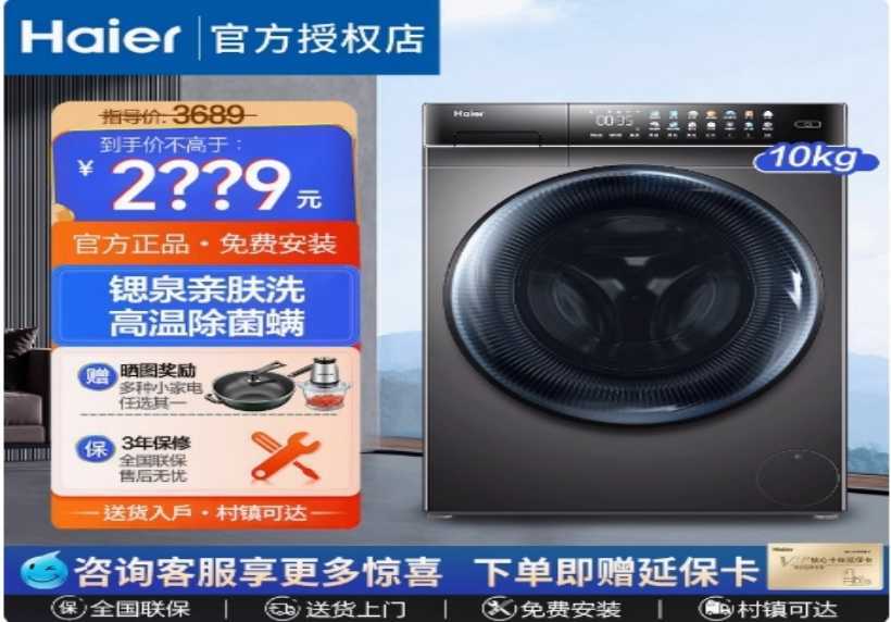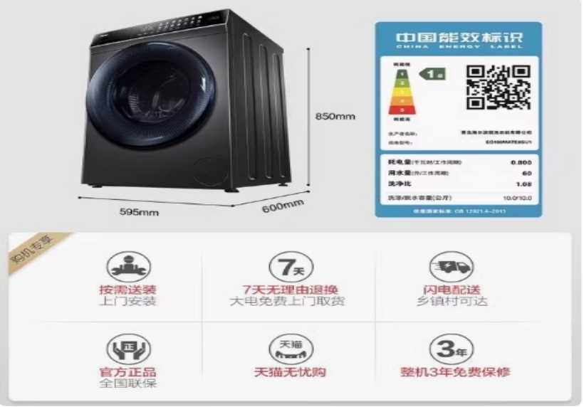 直驱变频10kg智能投放防震动滚筒洗衣机