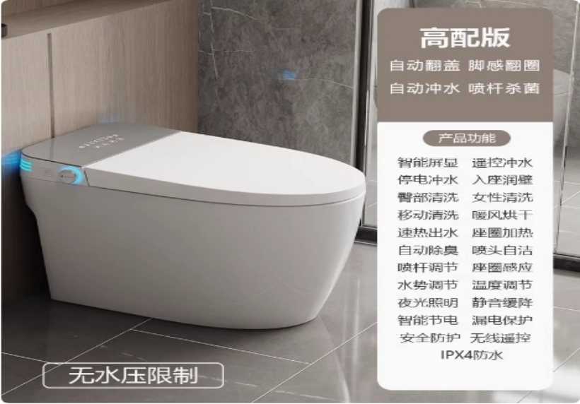 科勒智能马桶家用 【灰色高配版】内置水箱+自动覆盖 【无水压限制】400mm
